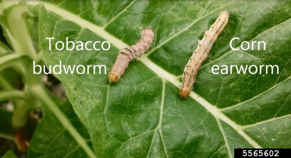 Tobacco budworm and corn earworm adults can be differentiated by the color of their wings, most of the time (Figure 2 and Figure 3). Corn earworm larvae (Helicoverpa zea) may also be present in tobacco, and these 2 species are difficult to distinguish between as larvae without magnification (Figure 4). These cannot be separated when 1-2 instars are present, only when advance instars are present. Tobacco budworms and corn earworms are two common crop-damaging caterpillars. They both feed on a variety of crops, including tobacco, cotton, and soybeans, and look nearly identical. How can you tell them apart? See the video below for a guide to differentiating between these species.